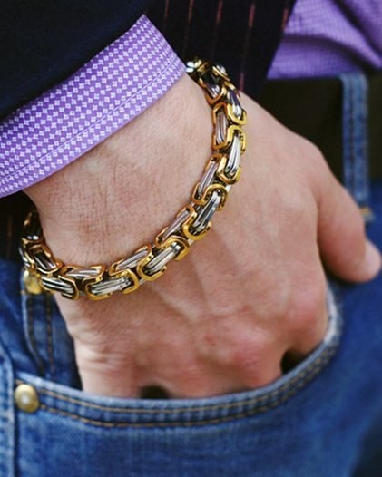 Браслет - это стильная вещь в вашем гардеробе. Уникальный дизайн, который разработан европейскими мастерами, уже привлек к себе большое внимание со стороны покупателей. Основная цель, которую преследовали производители изделия - это придание любому мужчине солидности и стиля. Оригинальный дизайн, особые материалы и напыление из драгоценных металлов - все это подчеркивает особый стиль браслета. Такое изделие подходит под любой образ. Длина: 23 см Ширина: 8 мм.
